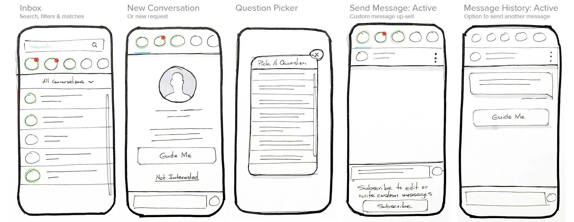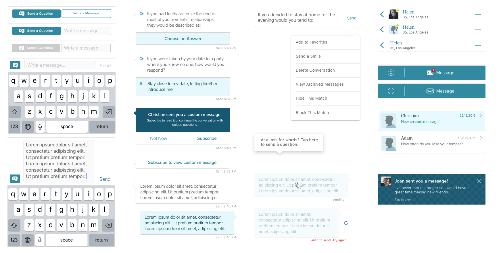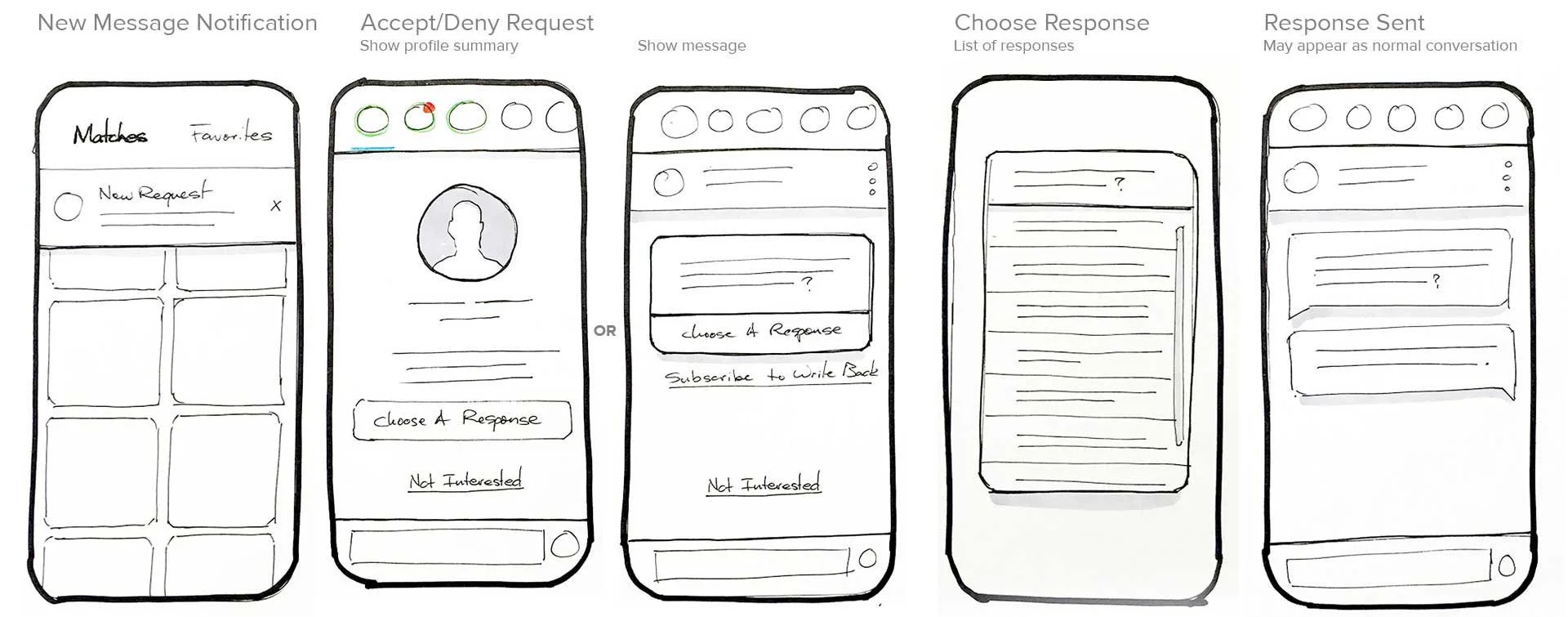 This was a redesign of a very outdated messaging system within the dating service. The existing communication process was a scientifically proven way to make deeper connections. But, users had a hard time completing the process which were missed opportunities to connect with people.