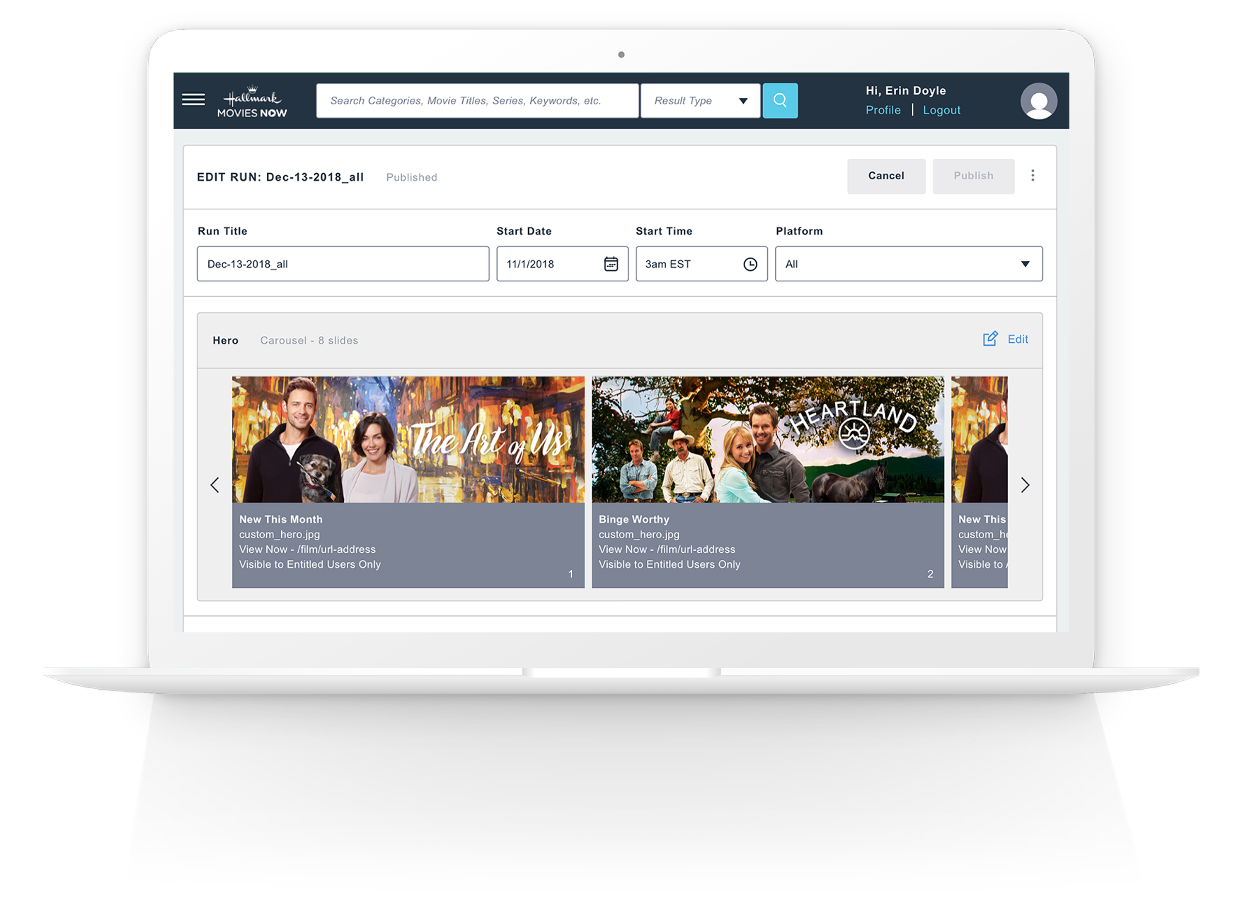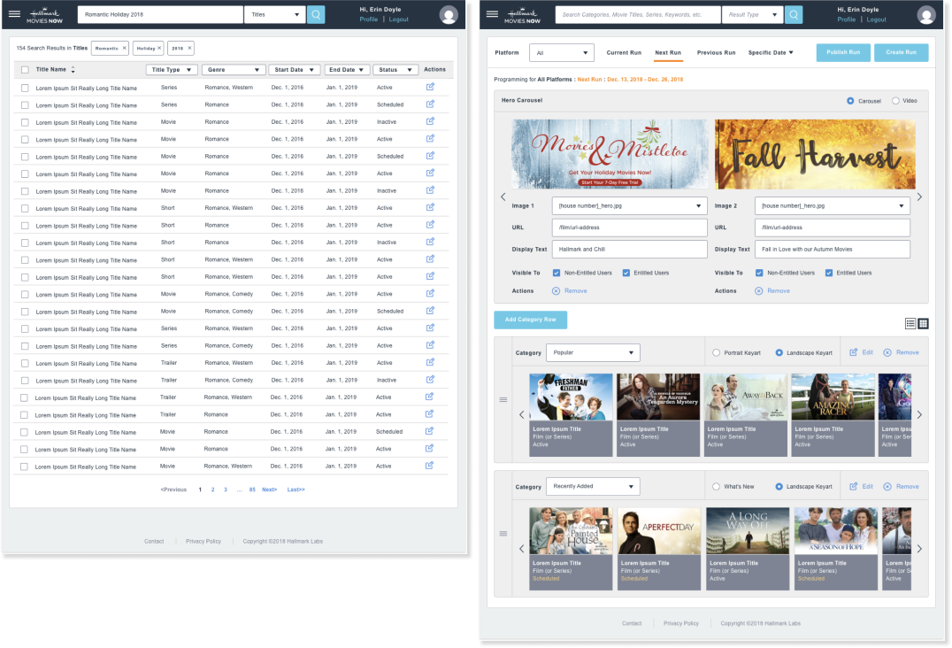 Hallmark Labs partnered with Hallmark Movies Now to build a custom content management system for their streaming video service from the ground up. Surprisingly nothing like this existed for Hallmark Movies Now. There were also updates to the customer-facing experience available on 15 platforms.