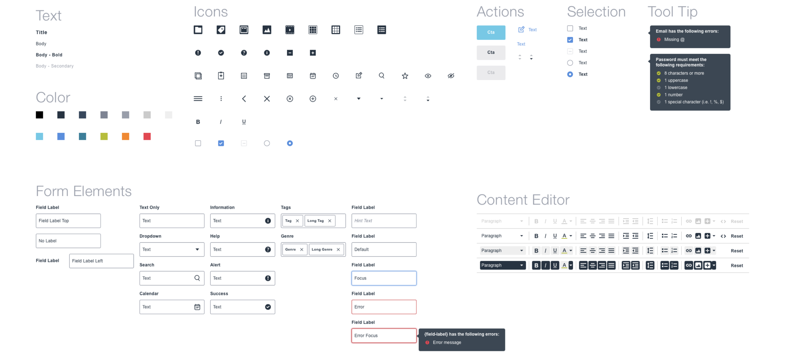 I built a minimal set of components that balanced the benefits of increased speed and consistency with the overhead to create/manage it. These elements provided the foundation of the majority of the experience.